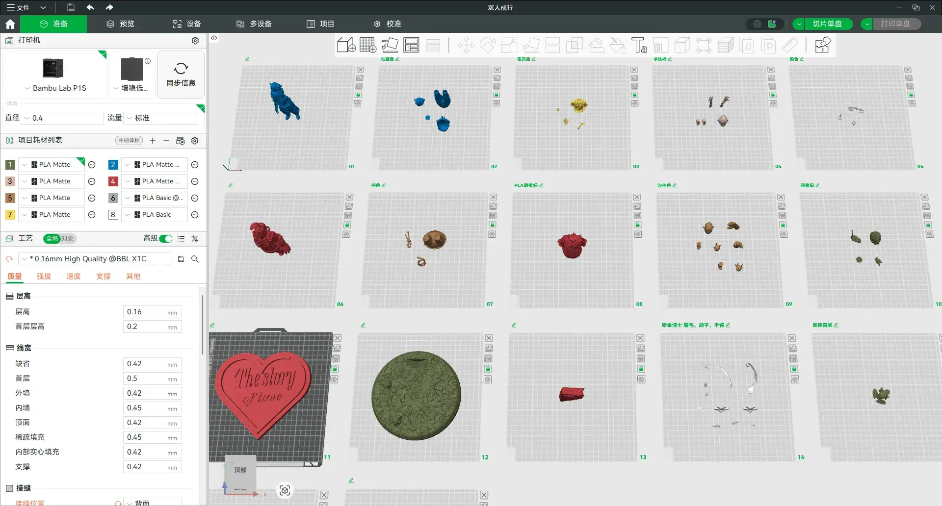 模型已经分件摆盘,并且调整好摆盘和参数